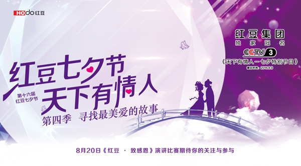 8月28日七夕當(dāng)晚19:30,由紅豆集團(tuán)獨(dú)家冠名的中央電視臺(tái)綜藝頻道2017年七夕特別節(jié)目《紅豆七夕節(jié) 天下有情人》正式播出。