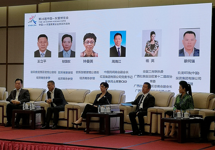 9月20日,在第16屆中國(guó)—東盟博覽會(huì)期間,中國(guó)駐東盟國(guó)家經(jīng)商參贊與民營(yíng)企業(yè)家交流會(huì)在南寧舉行,全國(guó)工商聯(lián)黨組成員、副主席邱小平,廣西壯族自治區(qū)政協(xié)副主席、工商聯(lián)主席磨長(zhǎng)英出席并致辭。紅豆集團(tuán)董事局主席兼CEO周海江應(yīng)邀出席,并從以“八方共贏”高質(zhì)量共建“一帶一路”方面,分享了西港特區(qū)建設(shè)經(jīng)驗(yàn)。