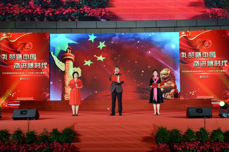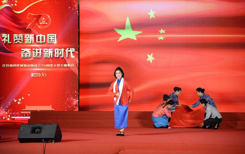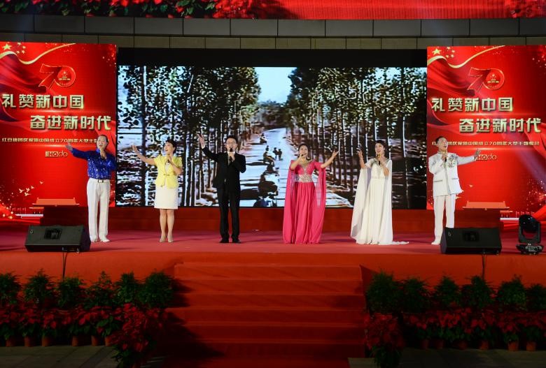 “我愛你中國,我愛你中國,我要把美好的青春獻(xiàn)給你,我的母親,我的祖國……”9月29日晚,由紅豆集團(tuán)主辦的“禮贊新中國 奮進(jìn)新時代”——慶祝新中國成立70周年大型主題歌會在東港紅豆萬花城圓滿舉行。由紅豆集團(tuán)“先進(jìn)黨員”、“先進(jìn)勞?!贝砼c合唱團(tuán),一同合唱的歌曲《我愛你,中國》拉開了歌會的序幕。整場主題歌會以歌曲聯(lián)唱、大合唱、經(jīng)典片段演繹及配樂朗誦等多種形式,歌唱祖國,慶祝新中國70華誕。歌會濃濃的愛國情懷感染了現(xiàn)場每一位觀眾。