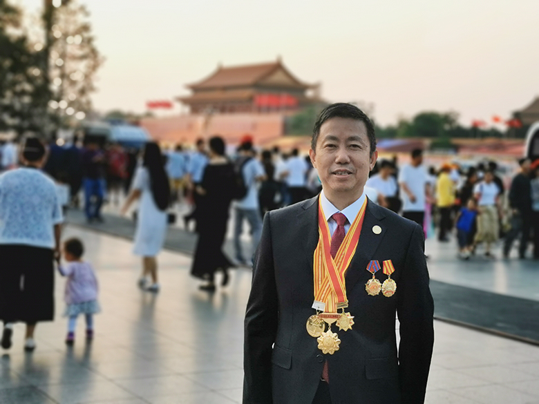 紅豆集團(tuán)董事局主席兼CEO周海江受邀前往北京出席新中國成立70周年系列活動,為了此次歌會,他在天安門現(xiàn)場附近拍攝了視頻短片傳到歌會現(xiàn)場,與所有紅豆人分享參與國慶活動的喜悅和光榮,他表示“能夠受邀參與國慶系列活動,這份榮譽(yù)歸功于所有員工幾十年來始終堅(jiān)持不移的聽黨話、跟黨走、報(bào)黨恩”,他還表達(dá)了對祖國生日的祝福。
