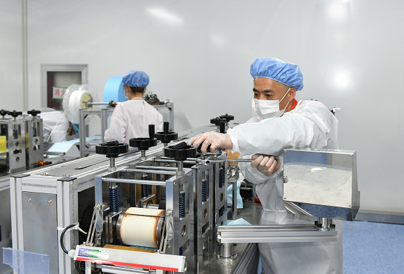 抗擊新冠疫情仍處于關(guān)鍵期,口罩作為一線醫(yī)護、企業(yè)復(fù)工、民眾出行的必備品,需求量仍暴增。3月3日凌晨3點,剛剛運送到紅豆口罩生產(chǎn)車間的兩套全自動口罩生產(chǎn)設(shè)備,在經(jīng)歷了幾小時的安裝、調(diào)試后,順利開工,保守預(yù)計日產(chǎn)可達10萬只。看著一片片從全自動口罩機上飛速下來的潔凈口罩,“金牌”調(diào)試員、紅豆運動裝公司技術(shù)科科長吳曉東,也被同事戲稱為“方便面”科長的他長舒一口氣,揉了揉早已酸澀的雙眼,準備下班。