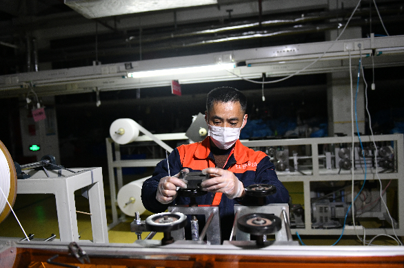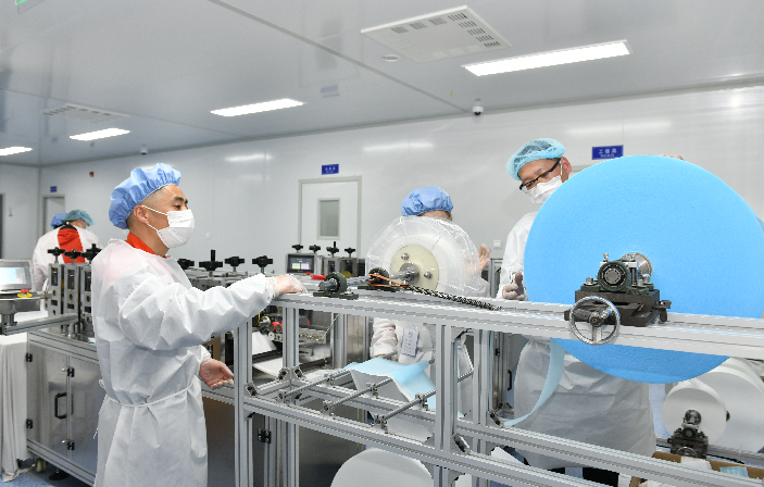 他說,剛開始心里也沒底,畢竟沒有搞過,在和小伙伴們一起研究、反復(fù)摸索后總算有了門道。吳曉東介紹,在半自動生產(chǎn)過程中,口罩面罩的生產(chǎn)由機器完成,再由人工熔接耳帶;全自動生產(chǎn)過程中,無紡布、熔噴布、鼻梁架、耳帶線等原材料只需放在對應(yīng)位置上即可,不再需要其他工序。在這些過程中,機器的精確程度都影響著次品率。長途運輸、稍有不慎,一個螺絲的松動、一個刀口的裂紋都會影響口罩面罩的切縫、鼻梁架的位置偏移,而調(diào)試工作就是讓這些機器盡可能嚴絲合縫,從而發(fā)揮最大效能。同樣面對陌生的設(shè)備,吳曉東憑借自身學習經(jīng)驗和對機械的興趣與鉆研,不斷與新設(shè)備磨合,在一次次糾正和摸索中,屢屢找出最佳解決方案。口罩全自動生產(chǎn)過程中,一條生產(chǎn)線出現(xiàn)了切不斷面罩的問題,吳曉東第一時間趕到現(xiàn)場,認真校準、仔細判斷,直到發(fā)現(xiàn)問題出在一片刀片上,只需替換即可。診斷設(shè)備的吳曉東看著沉著冷靜,其實心里也沒底,全憑經(jīng)驗摸黑前行,他坦言,最擔心生產(chǎn)前后道跟不上,不能保證產(chǎn)能,只能一點一點試、一點一點調(diào),和時間賽跑,直到合格的面罩一片片從出口快速飛出、全部設(shè)備滿負荷生產(chǎn)。從剛開始的親自安裝調(diào)試,到后來指導(dǎo)技術(shù)人員安裝調(diào)試口罩生產(chǎn)線,吳曉東獲得了車間管理人員和工人的一致贊譽,成為技術(shù)大師傅。