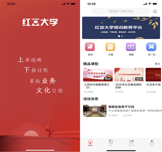 “公司每周都會安排培訓(xùn)課程,但是因?yàn)楣ぷ餍再|(zhì)的原因,我以前經(jīng)常要各地出差,所以很多課程都沒有機(jī)會上。雖然之前也有其他平臺的線上培訓(xùn),但是只是部分的內(nèi)容?,F(xiàn)在有了紅豆大學(xué)這個線上學(xué)習(xí)平臺,我終于可以合理安排自己的時間來學(xué)習(xí)了,我感到非常開心?!眴T工小陳是紅豆集團(tuán)的一名銷售員,她也是一名非常熱愛學(xué)習(xí)的員工?!霸诩t豆大學(xué)的平臺里,我還看到了練習(xí)太極拳的視頻。這是在提醒我們員工鍛煉身體,提高身體素質(zhì)。學(xué)習(xí)不忘鍛煉身體,我有空的時候,都會按照視頻里動作的來練習(xí)?!毙£惷刻於紩蜷_紅豆大學(xué)APP,看看里面又有什么新的課程內(nèi)容。
