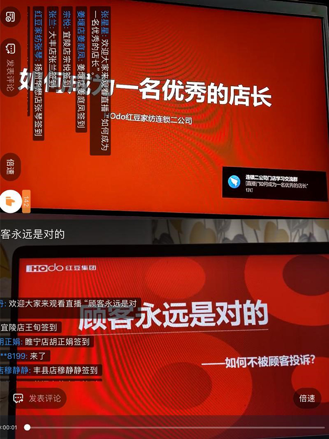 據(jù)悉,除“紅豆大學(xué)”APP外,紅豆集團(tuán)旗下各公司還在利用微信、釘釘、云端等各個平臺開展線上培訓(xùn),確保培訓(xùn)的多樣化和有效性。例如紅豆居家公司開展《這一秒不放棄,下一秒就會有希望!》線上培訓(xùn),對特殊時期門店客流進(jìn)行了分析,并以優(yōu)秀案例分析來告訴大家如何增量用戶,該場培訓(xùn)參與總計超2300人次。還有,紅豆家紡連鎖二公司的《如何成為一名優(yōu)秀的店長》培訓(xùn)、紅豆國際的《市場多元化拓展培訓(xùn)》等都取得了良好的反響。據(jù)統(tǒng)計,從1月31日至3月9日,整個紅豆集團(tuán)累計開展培訓(xùn)超700場次,參與培訓(xùn)28萬人次。