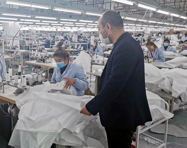 為了生產(chǎn)順利進(jìn)行,徐亞?wèn)|首先梳理出哪些員工符合上崗要求,做好溝通,動(dòng)員返廠。復(fù)工后徐亞?wèn)|與職工并肩作戰(zhàn),每天穿梭在生產(chǎn)車(chē)間,協(xié)調(diào)組織防護(hù)服生產(chǎn),一直沒(méi)有停下忙碌的腳步,加班也成為他的工作常態(tài)。