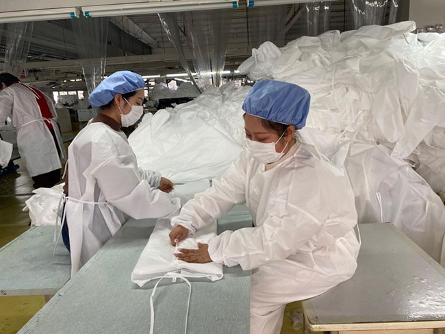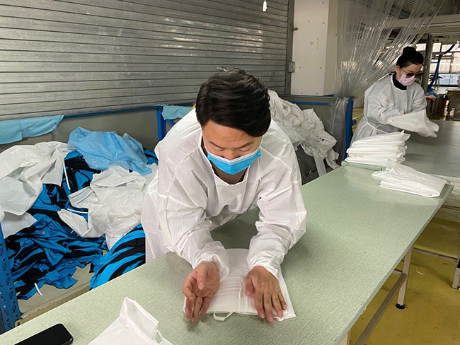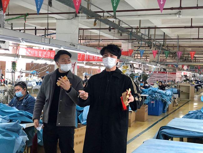 2月24日,紅豆藝術(shù)團(tuán)團(tuán)員在團(tuán)長張波帶領(lǐng)下,奔赴生產(chǎn)一線,爭當(dāng)一名普通志愿者,投身于紅豆防護(hù)服的生產(chǎn)包裝工作中。他們一邊親臨工廠體驗(yàn)戰(zhàn)“疫”生活,一邊現(xiàn)場采訪奮戰(zhàn)在生產(chǎn)一線的優(yōu)秀黨員干部和先進(jìn)員工,收集紅豆戰(zhàn)“疫”的最新素材,為創(chuàng)作新作品鋪陳。