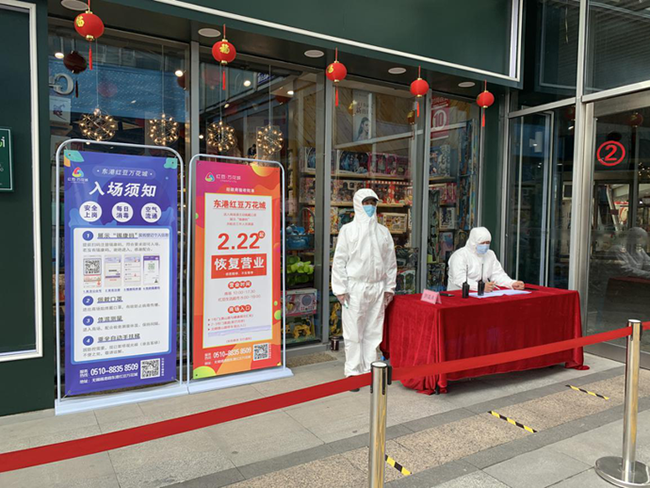 閉店期間,各項目積極做好防疫保障,儲備防疫物資,在得知可申請回復(fù)營業(yè)后第一時間提交申請,經(jīng)政府驗收批準(zhǔn),2月22日東港紅豆萬花城成為錫山區(qū)首家恢復(fù)營業(yè)的購物中心,全力保障百姓的生產(chǎn)生活需求,與此同時,中山路紅豆萬花城、人民路紅豆萬花城、鎮(zhèn)江紅豆萬花城等項目也逐步通過驗收,恢復(fù)營業(yè)。