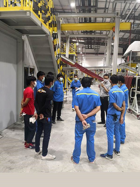 在國內(nèi)疫情嚴重的當下,工廠內(nèi)沒有國內(nèi)的熟練工,朱崇留就對泰國員工進行培訓,讓他們盡快成為能上前線的“戰(zhàn)士”。與此同時,他并沒有忽視國內(nèi)半鋼工廠的工作任務。忙完泰國工廠的事后,又加班加點遠程處理國內(nèi)車間的工作,壓延的問題點分析,設備的安裝調(diào)試,內(nèi)襯層壓延機調(diào)試等,事無巨細,親力親為,用實際行動發(fā)揮著共產(chǎn)黨員的模范帶頭作用。