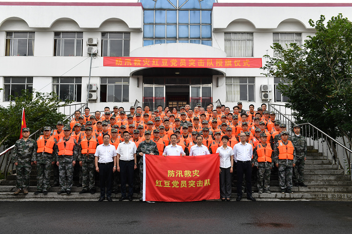 黨有號(hào)召,紅豆必應(yīng);國(guó)有需要,紅豆必有為。7月19日,紅豆黨委第一時(shí)間組織學(xué)習(xí)了中央組織部文件,并作出了成立防汛救災(zāi)黨員突擊隊(duì)的決定。7月20日,紅豆集團(tuán)人武部第一時(shí)間舉行防汛救災(zāi)黨員突擊隊(duì)授旗儀式,集團(tuán)黨委書(shū)記周海江向突擊隊(duì)授旗,100名黨員突擊隊(duì)向黨旗莊嚴(yán)宣誓。