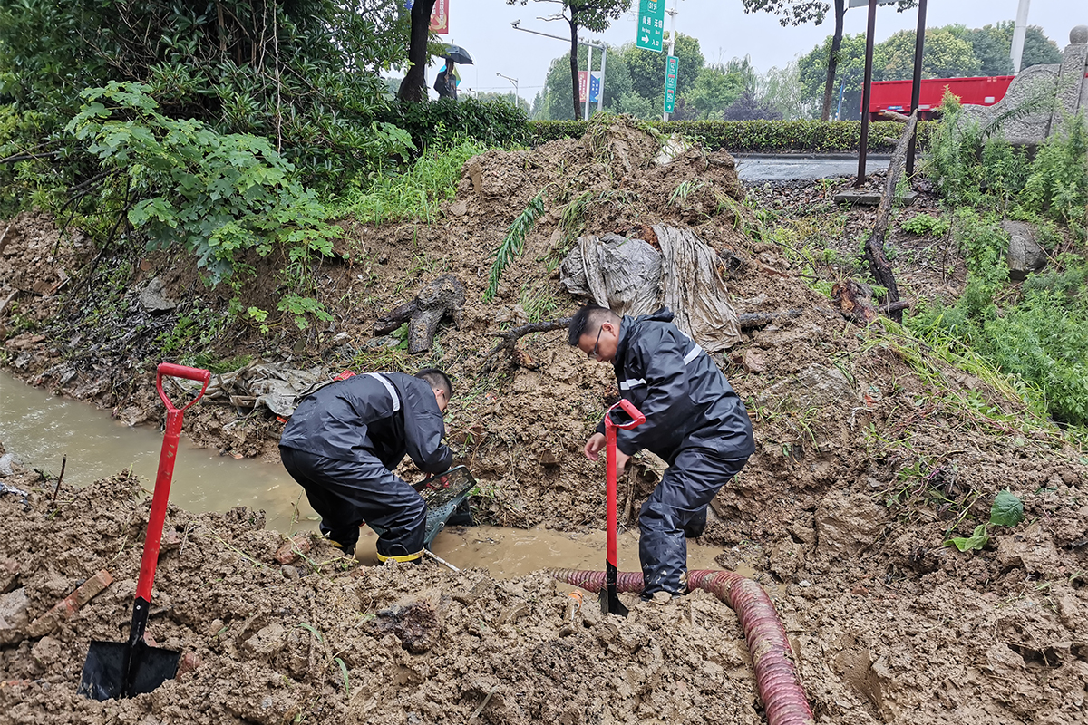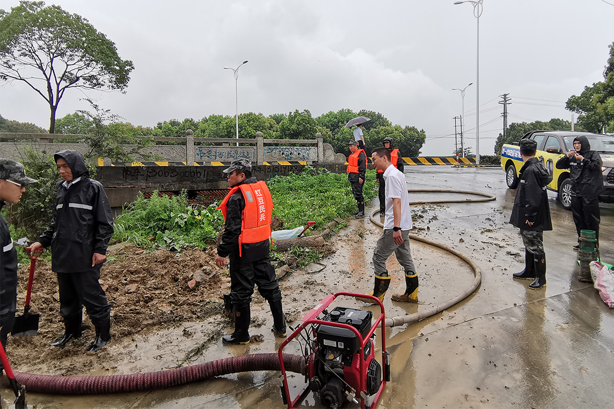 儀式之后,黨員突擊隊(duì)成員即刻前往村企統(tǒng)籌共建對(duì)象——山聯(lián)村,參加防汛救災(zāi)工作。該村唐家巷和一金屬制品廠發(fā)生嚴(yán)重內(nèi)澇,圍墻外圍積水一米多,突擊隊(duì)員迅速投入“戰(zhàn)斗”,裝沙袋、抽積水,經(jīng)過(guò)半個(gè)多小時(shí)的奮戰(zhàn),廠里內(nèi)澇解除。