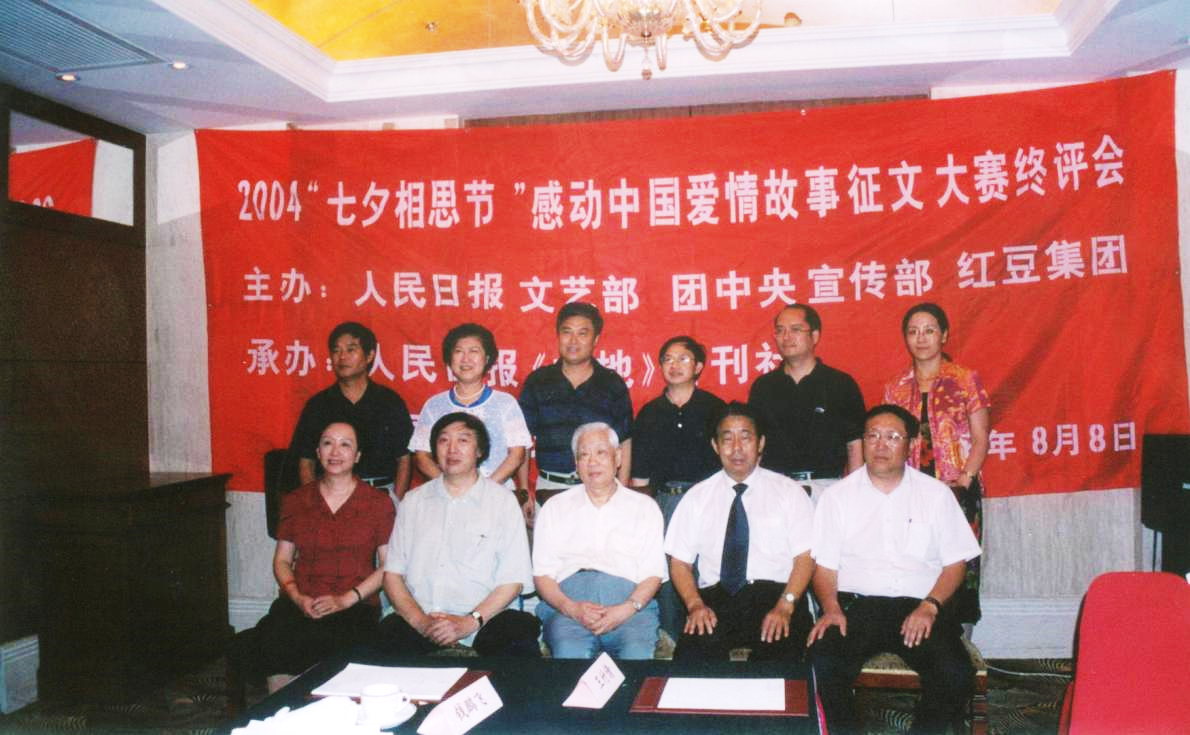 2004年第四屆紅豆七夕節(jié)“感動中國的愛情故事征文大賽”,趙本夫(后排左一)擔(dān)任評委